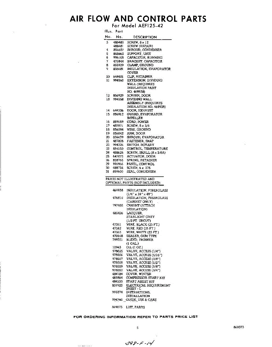 Parts for Whirlpool AEF12542: 05 - Lit / Optional Parts