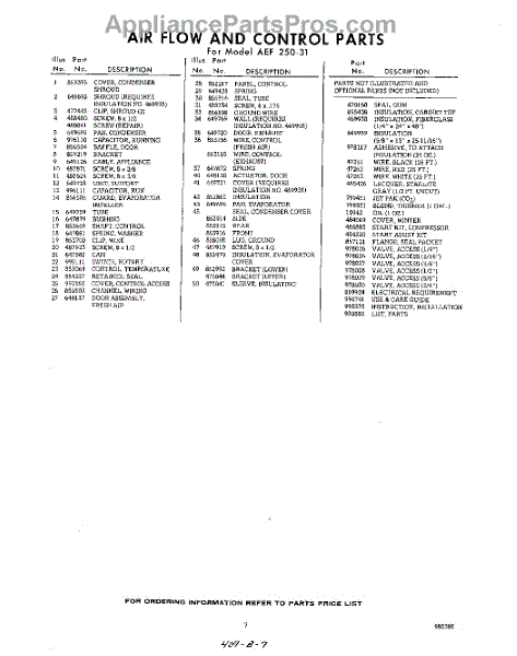 Parts for Whirlpool AEF25031: 07 - Lit / Optional Parts