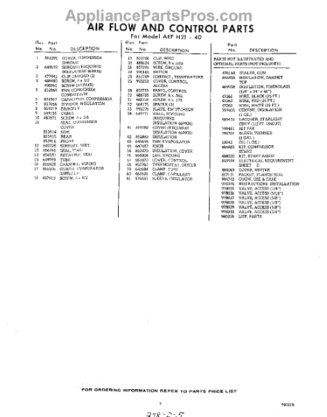 Parts for Whirlpool AEFH2140: 05 - Lit / Optional Parts