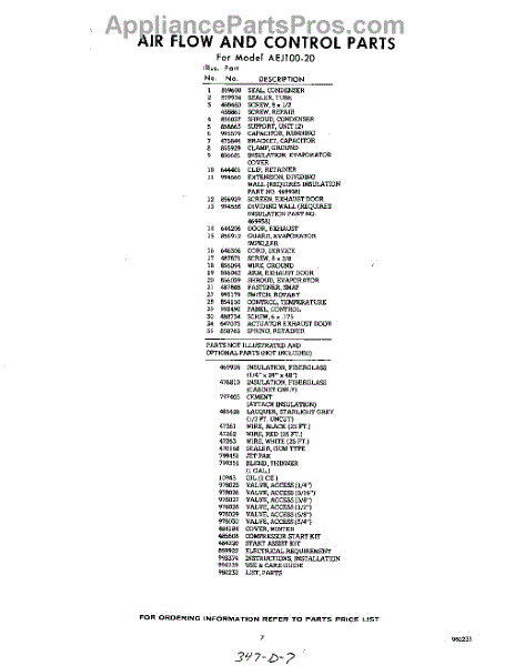 Parts for Whirlpool AEJ10020: 07 - Lit / Optional Parts