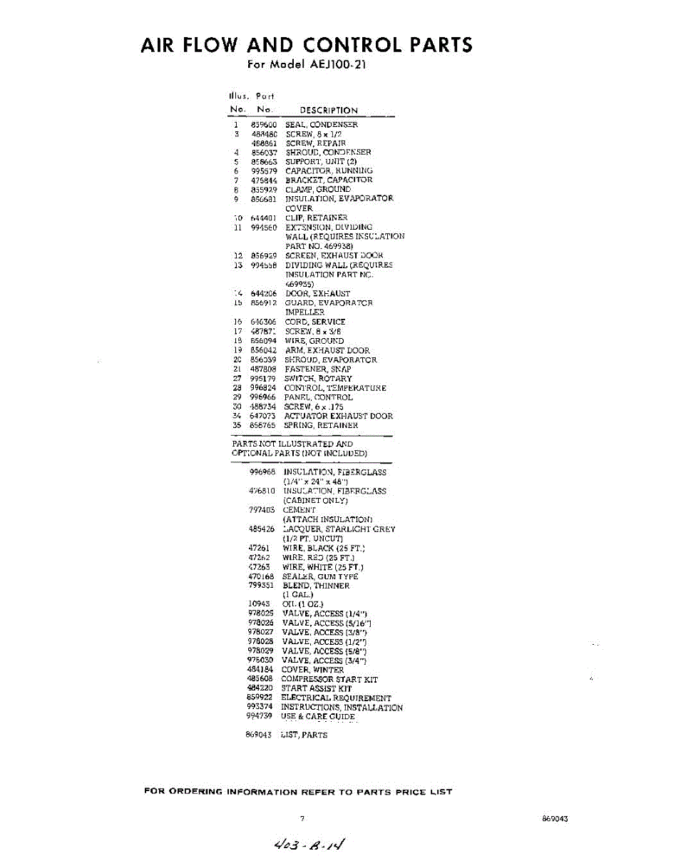 Parts for Whirlpool AEJ10021: 07 - Lit / Optional Parts