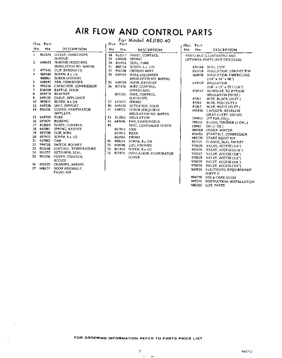 Parts for Whirlpool AEJ18040: 07 - Lit / Optional Parts