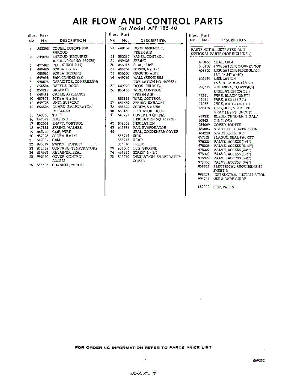 Parts for Whirlpool AFF18540: 07 - Lit / Optional Parts