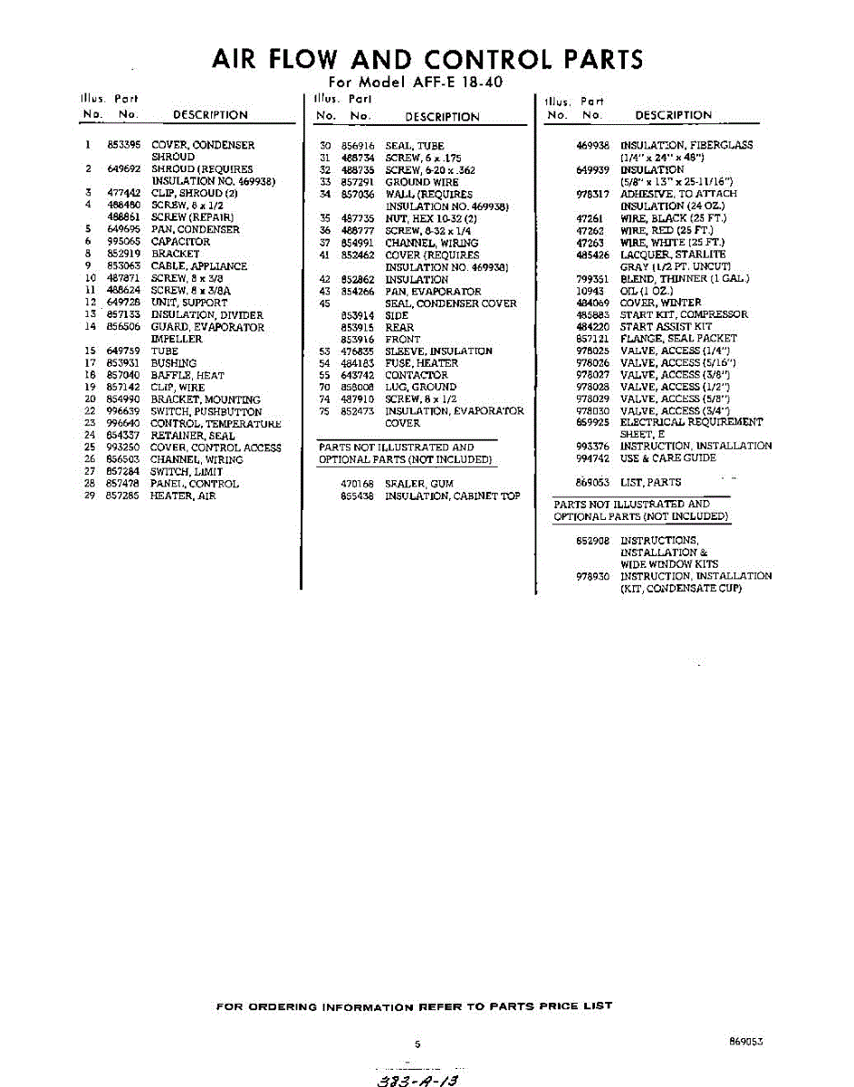 Parts for Whirlpool AFFE1840: 05 - Lit / Optional Parts