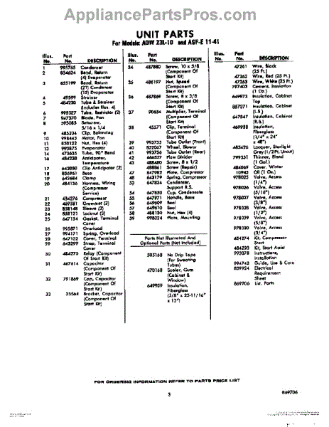 Parts for Whirlpool AGFE1141: 03 - Lit / Optional Parts