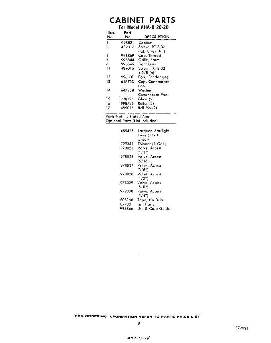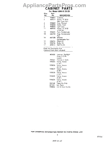 Parts for Whirlpool AHA02020: 05 - Lit / Optional Parts