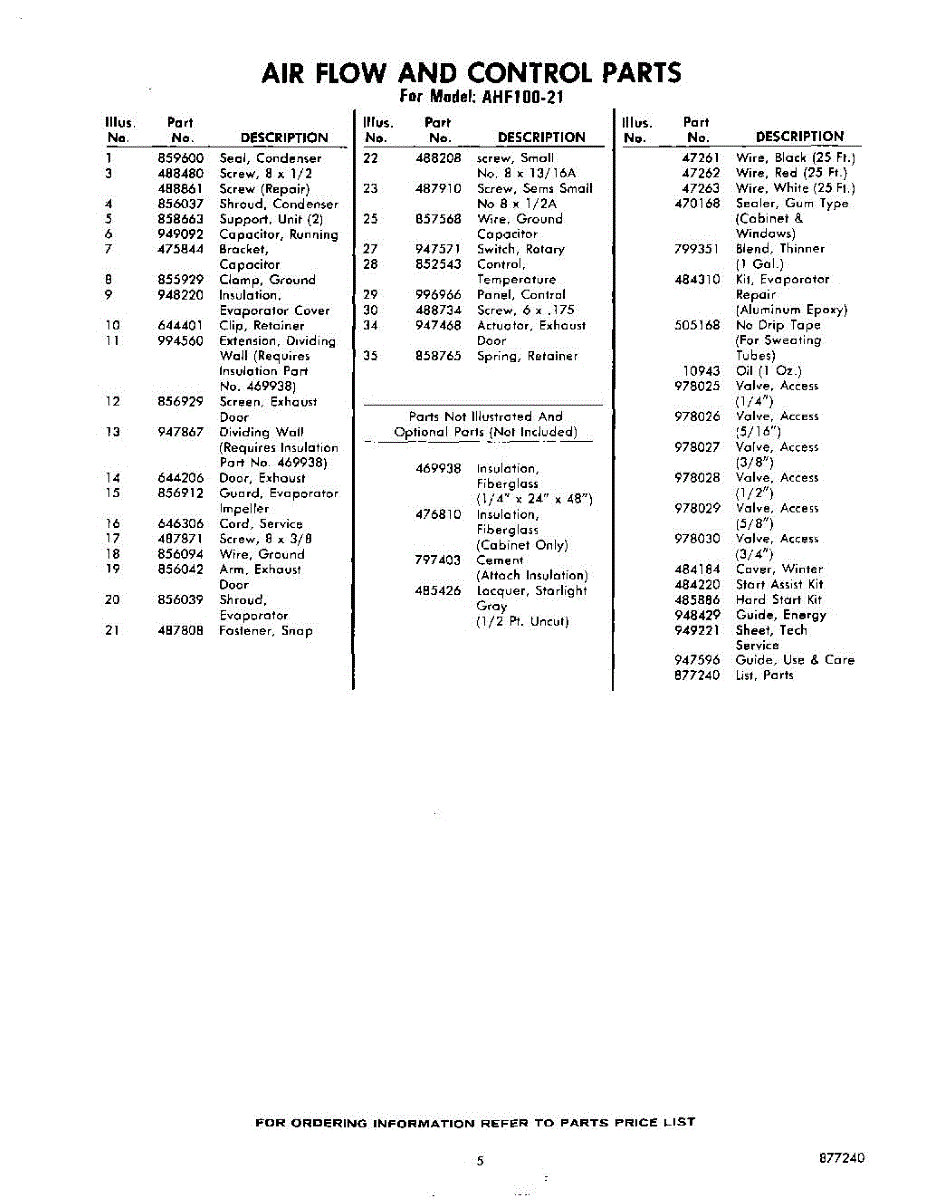 Parts for Whirlpool AHF10021: 05 - Lit / Optional Parts