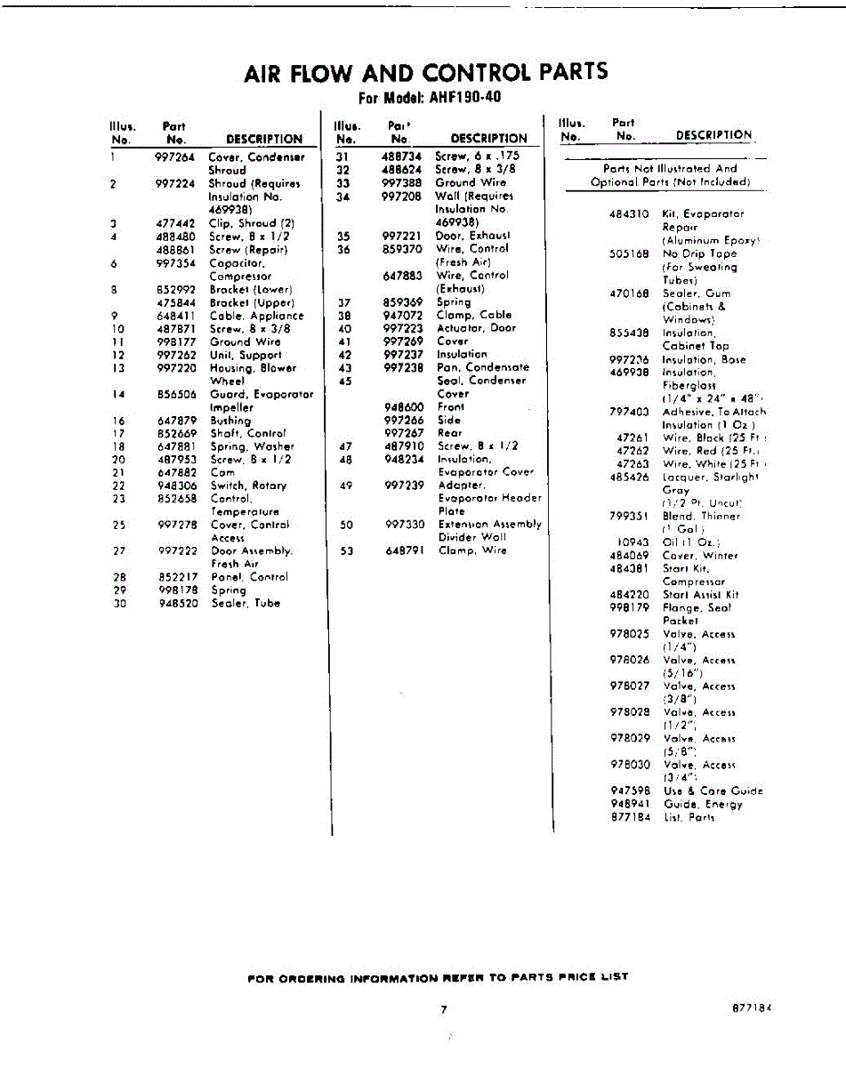 Parts for Whirlpool AHF19040: 07 - Lit / Optional Parts