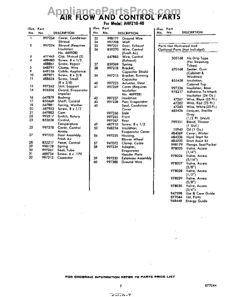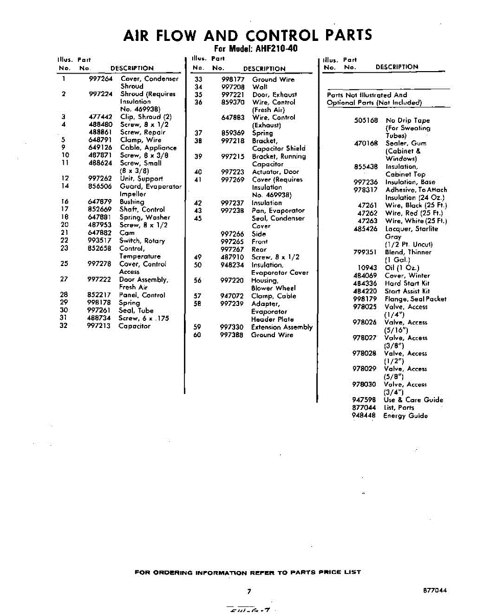 Parts for Whirlpool AHF21040: 07 - Lit / Optional Parts