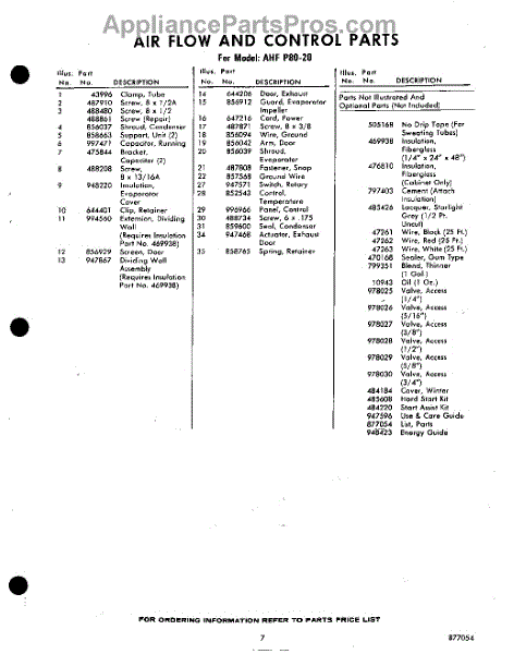 Parts for Whirlpool AHFP8020: 07 - Lit / Optional Parts