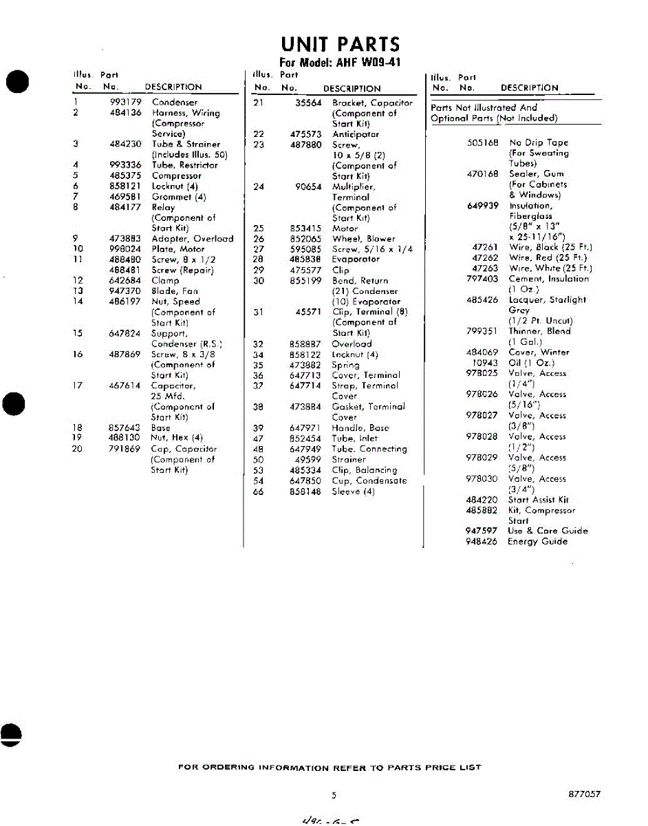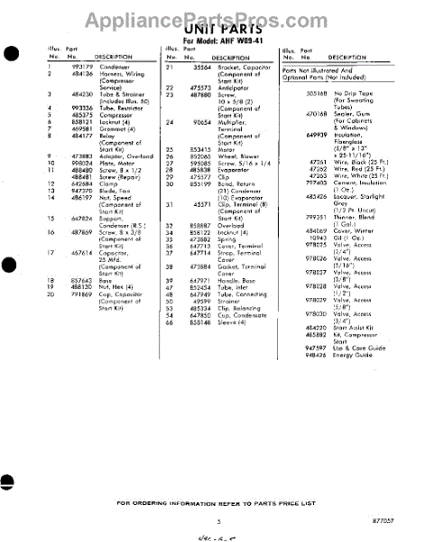 Parts for Whirlpool AHFW0941: 05 - Lit / Optional Parts