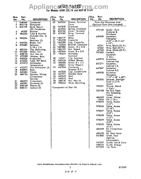 Parts for Whirlpool AHFW1141: 03 - Lit / Optional Parts