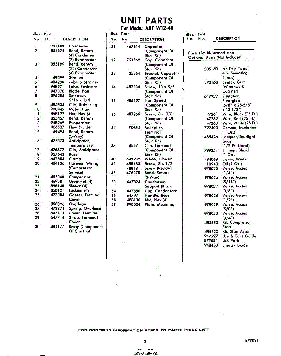 Parts for Whirlpool AHFW1240: 03 - Lit / Optional Parts
