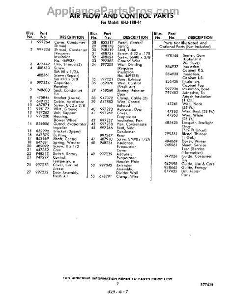 Parts for Whirlpool AHJ18041: 07 - Lit / Optional Parts