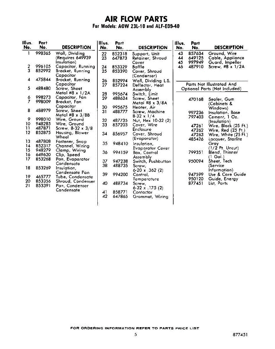 Parts for Whirlpool ALFE0940: 05 - Lit / Optional Parts