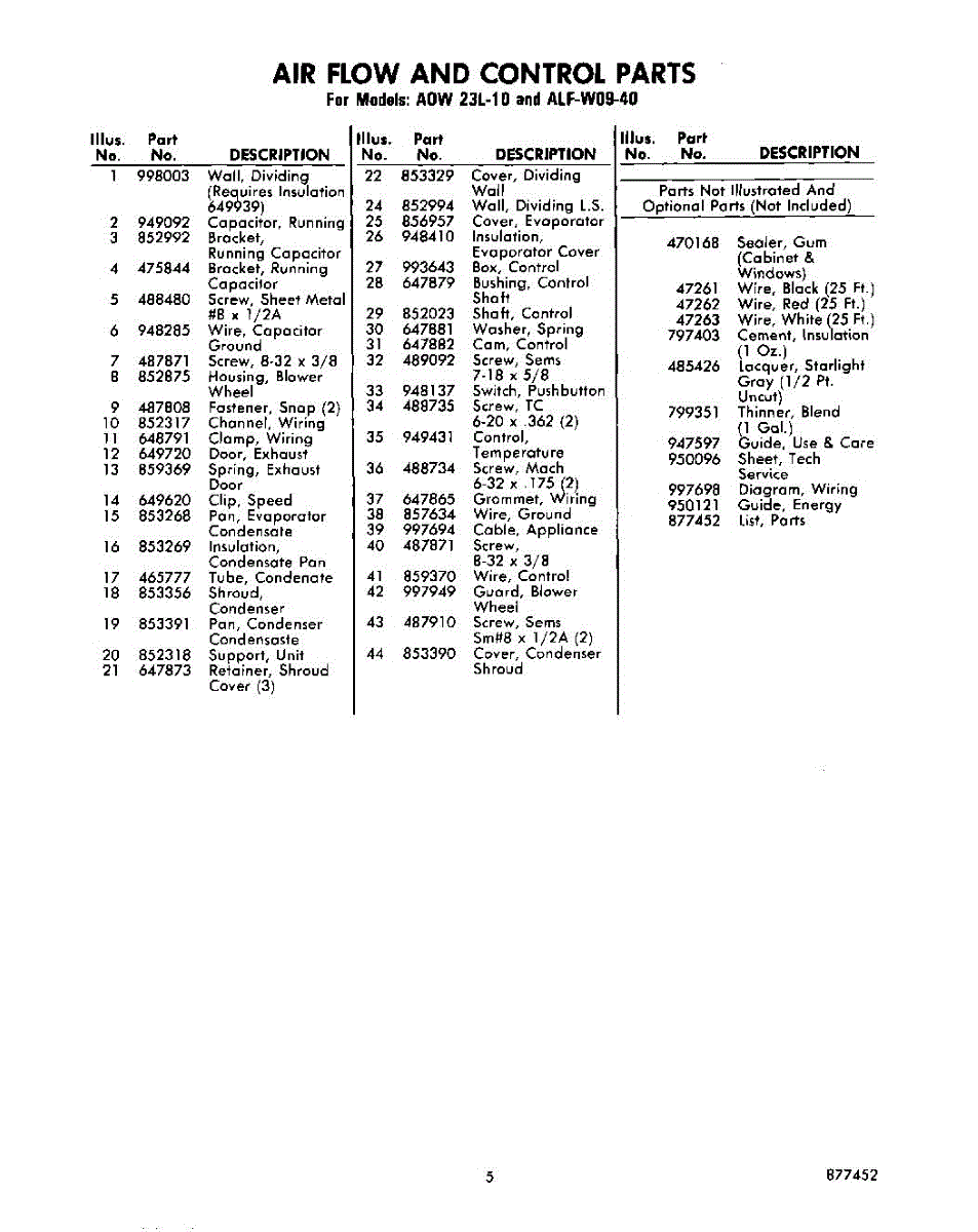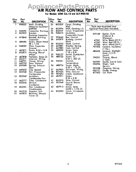 Parts for Whirlpool ALFW0940: 05 - Lit / Optional Parts