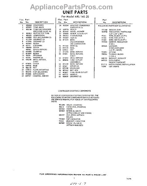 Parts for Whirlpool AXL14020: 07 - Lit / Optional Parts