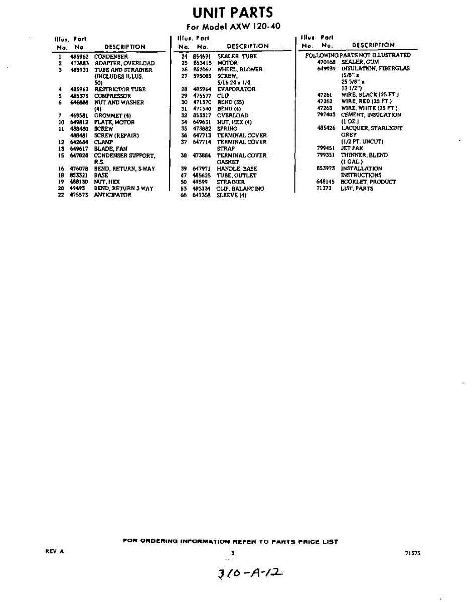 Parts for AXW12040
