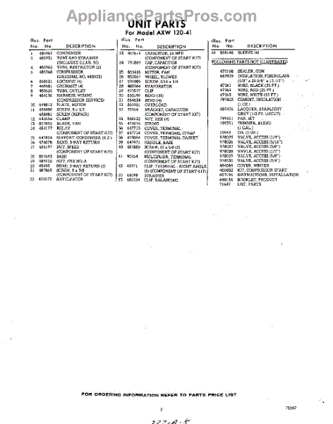 Parts for AXW12041