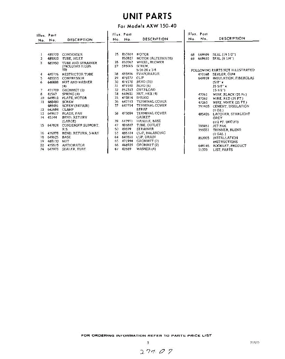 Parts for AXW15040