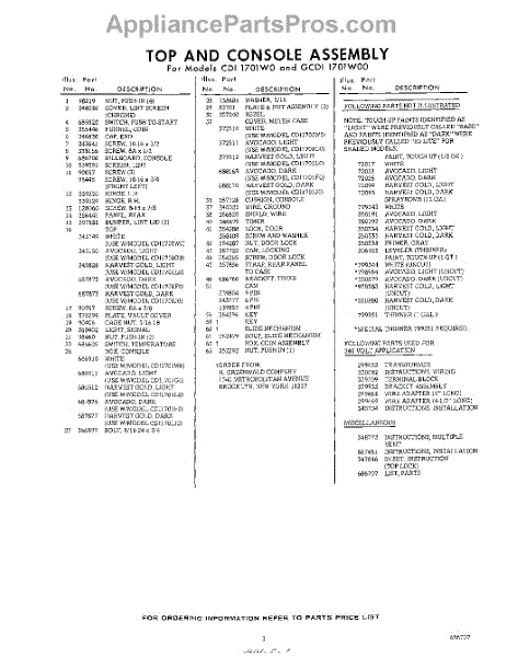 Parts for Whirlpool CDI1701W0: 03 - Lit / Optional Parts