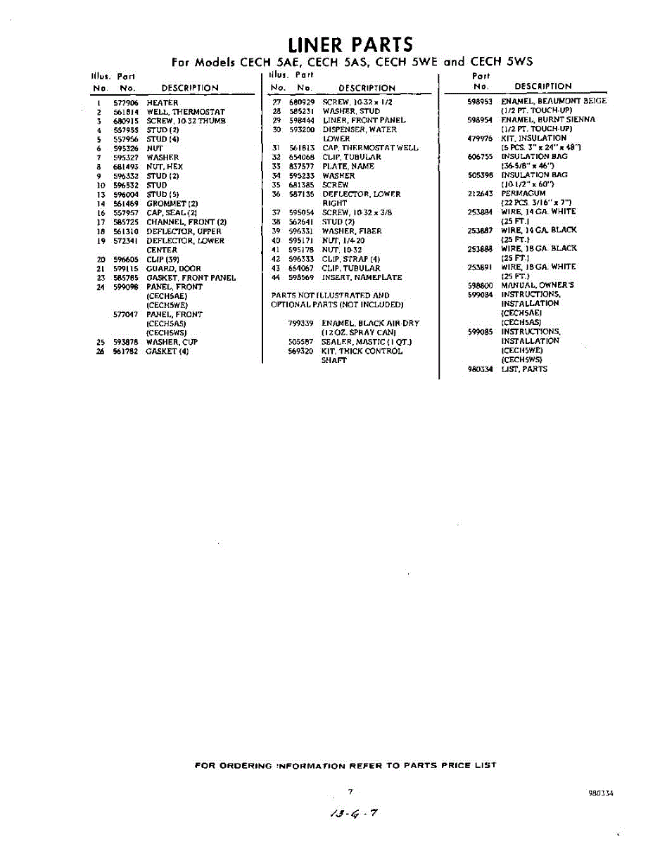 Parts for Whirlpool CECH5AS: 07 - Lit / Optional Parts