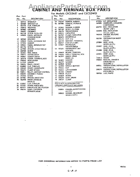 Parts for Whirlpool CECS2AE1: 03 - Lit / Optional Parts