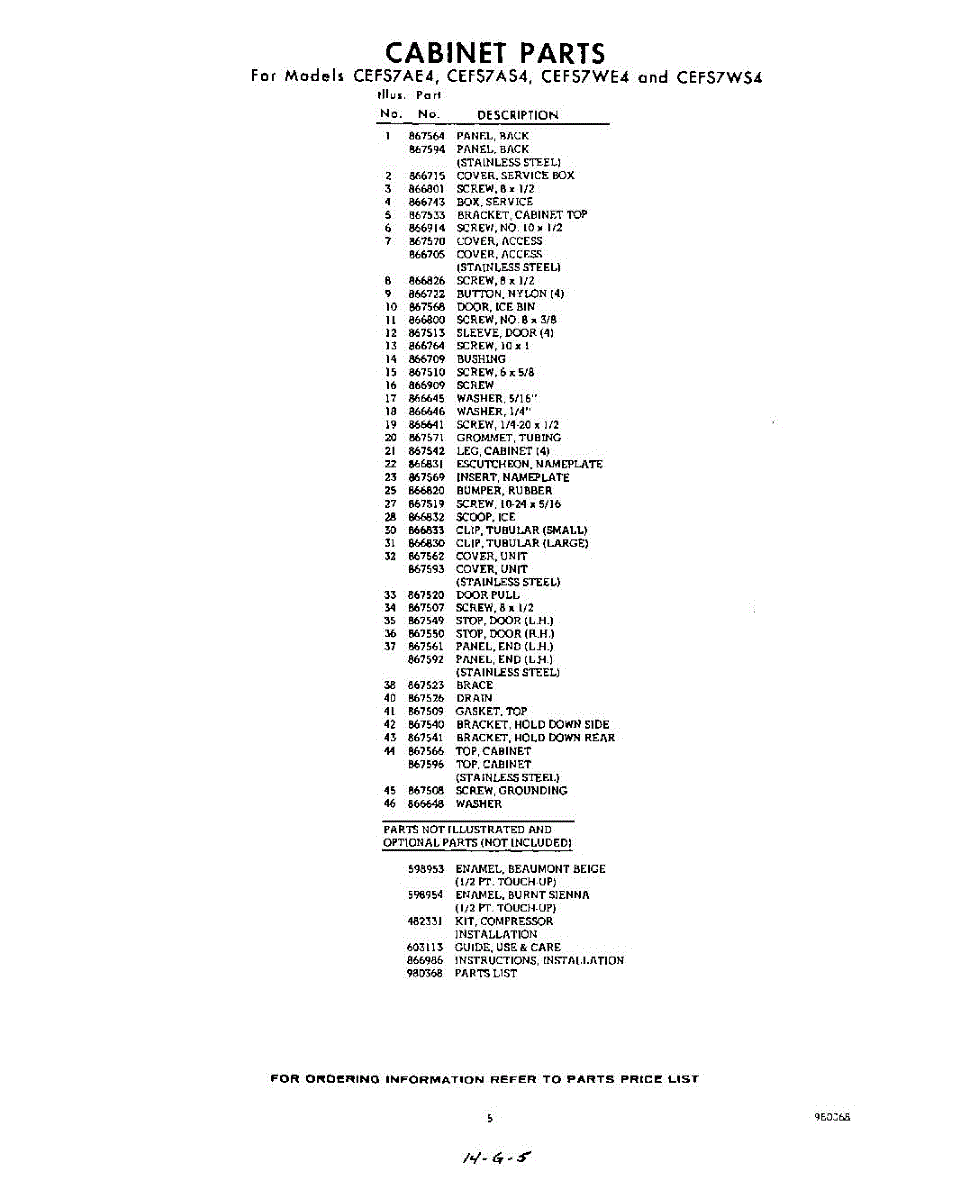 Parts for Whirlpool CEFS7AE4: 05 - Lit / Optional Parts