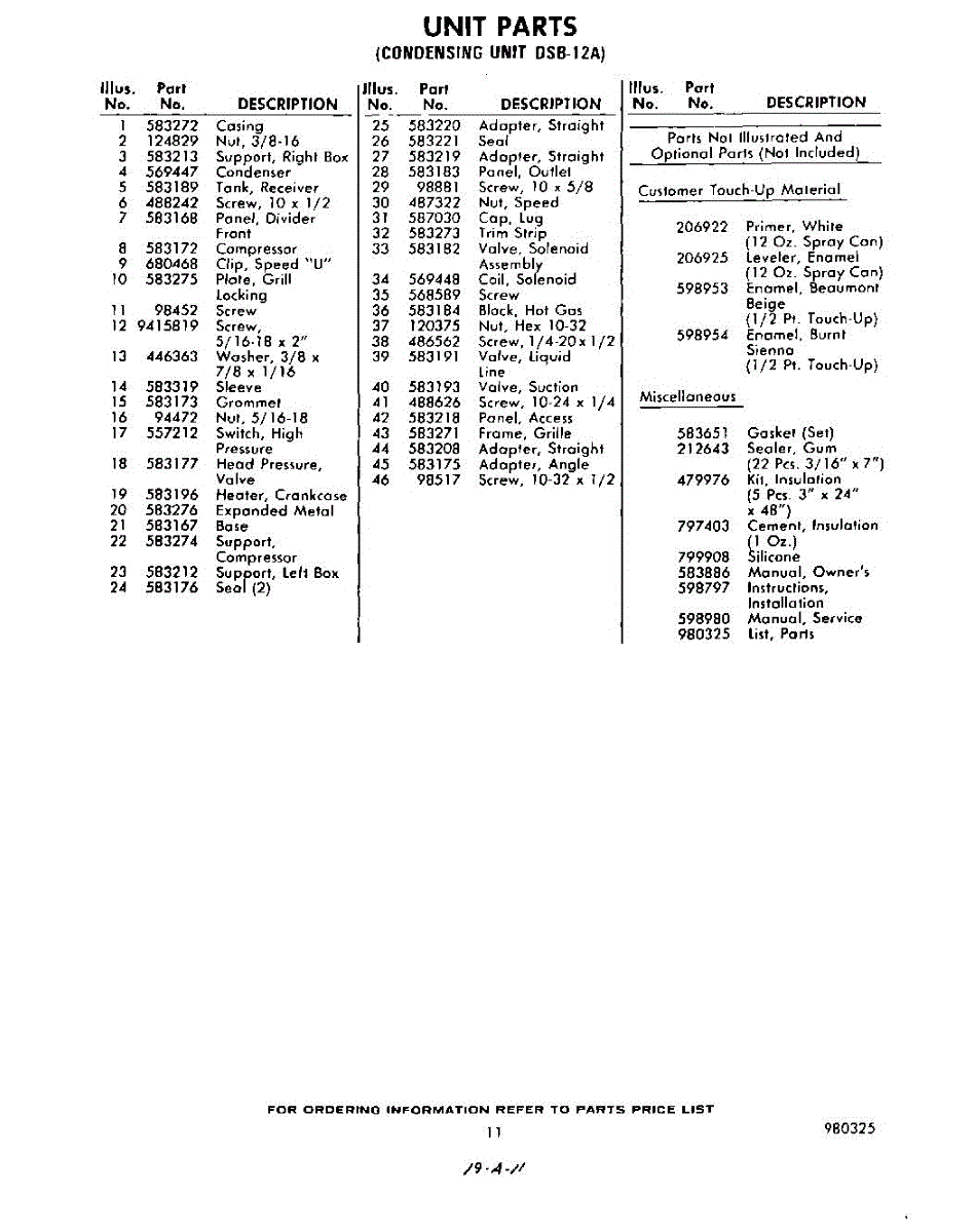 12 - Unit Parts (Dsb-11A)