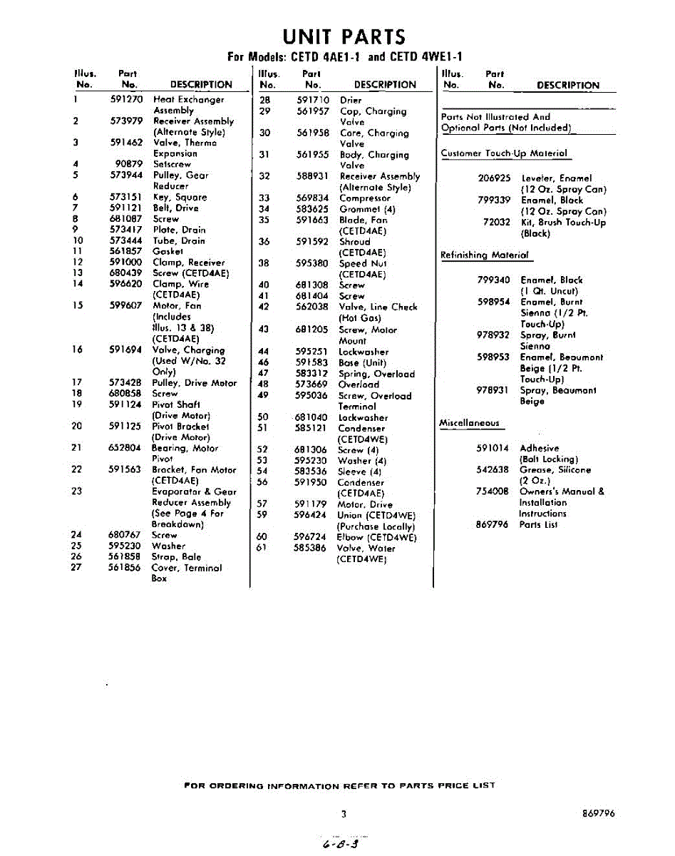Parts for CETD4WE11