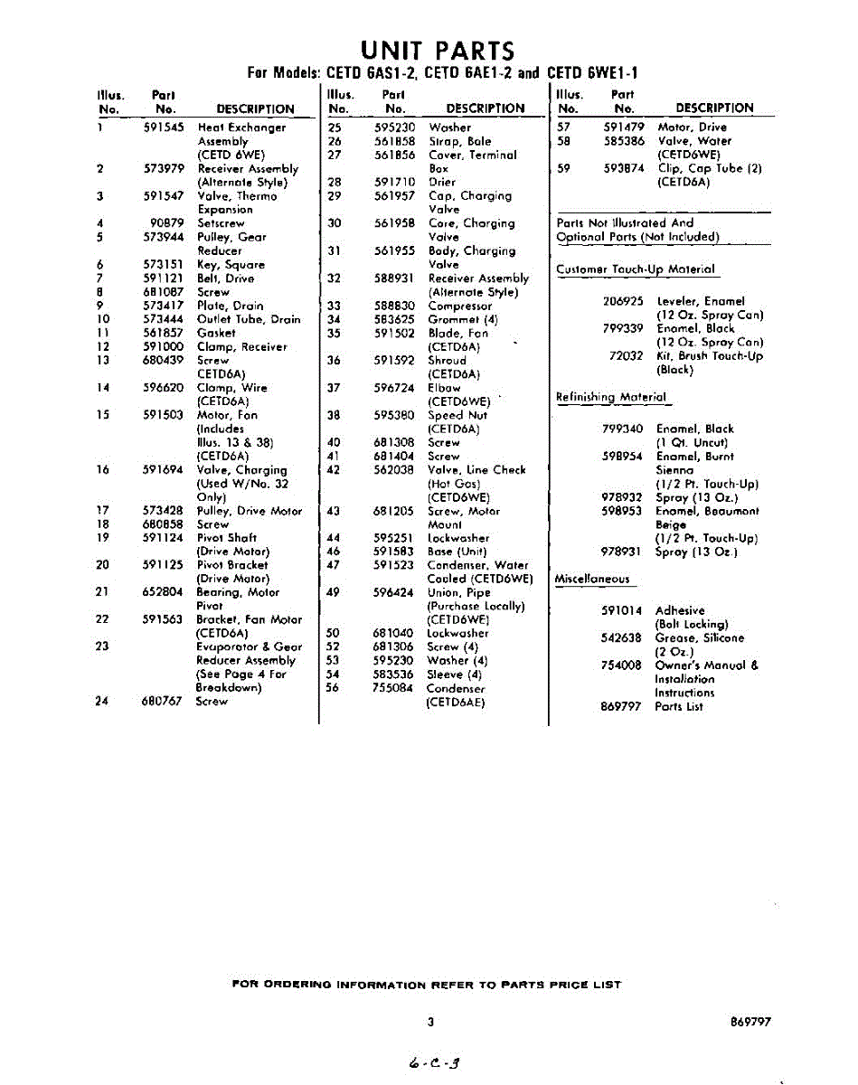 Parts for CETD6WE11