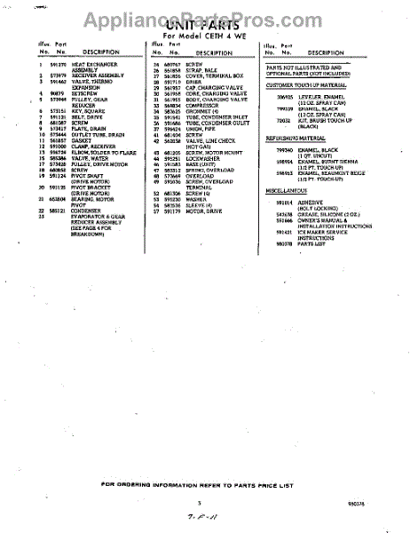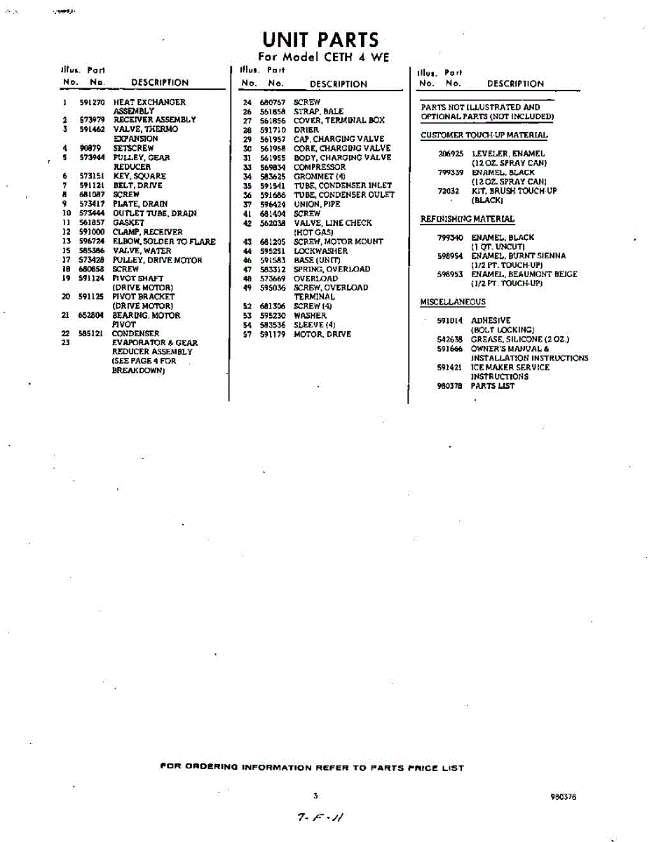 Parts for CETH4WE