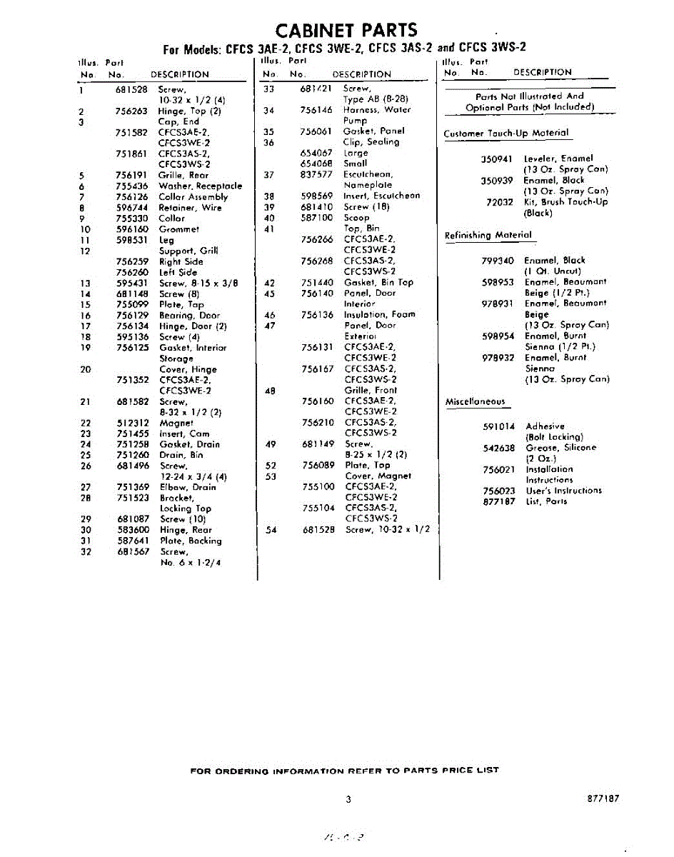 Parts for Whirlpool CFCS3AE2: 03 - Lit / Optional Parts