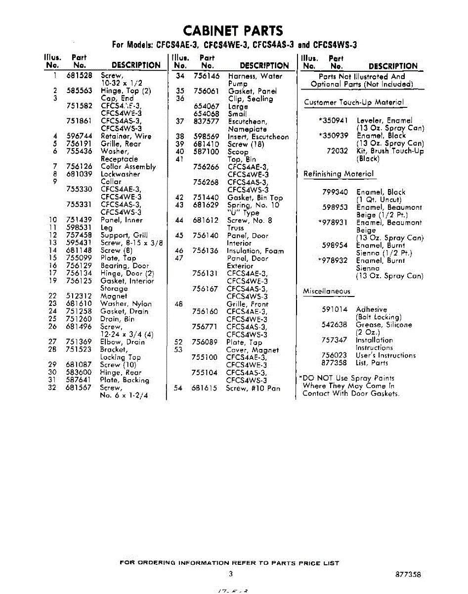 Parts for CFCS4WS3