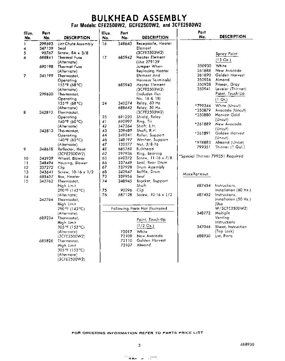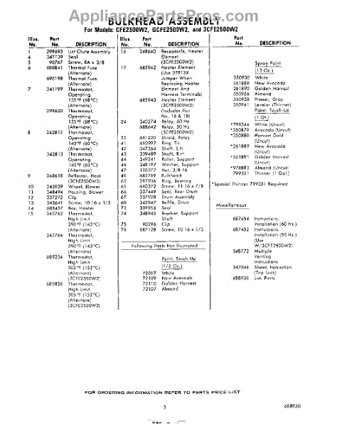 Parts for Whirlpool CFE2500W2: 03 - Lit / Optional Parts