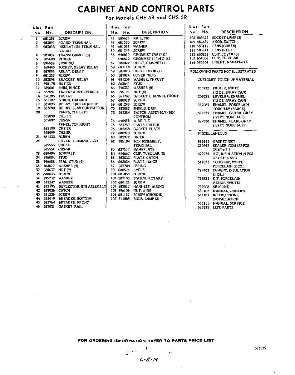 Parts for Whirlpool CHS5R: 05 - Lit / Optional Parts