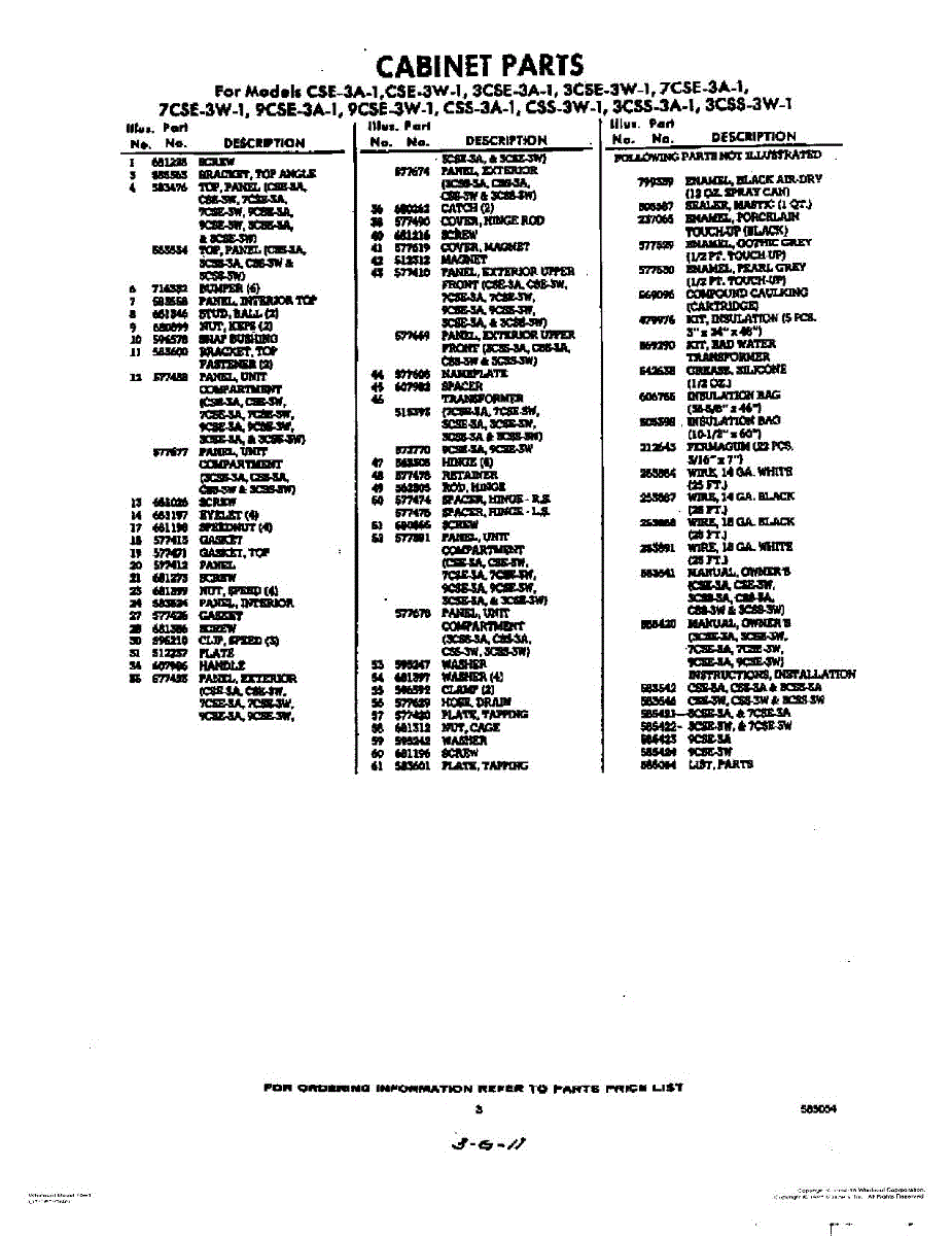 Parts for Whirlpool CSS3W1: 03 - Lit / Optional Parts