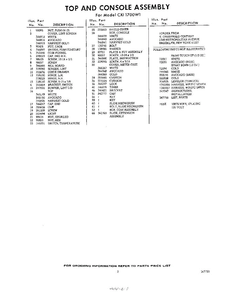Parts for Whirlpool CXI1701W1: 03 - Lit / Optional Parts