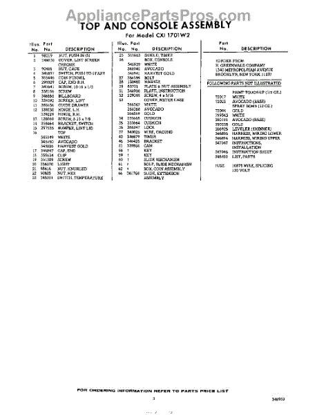 Parts for Whirlpool CXI1701W2: 03 - Lit / Optional Parts