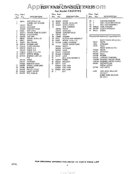 Parts for Whirlpool CXI2101W2: 04 - Lit / Optional Parts