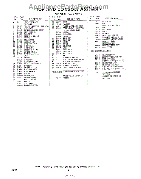 Parts for Whirlpool CXI2101W3: 04 - Lit / Optional Parts