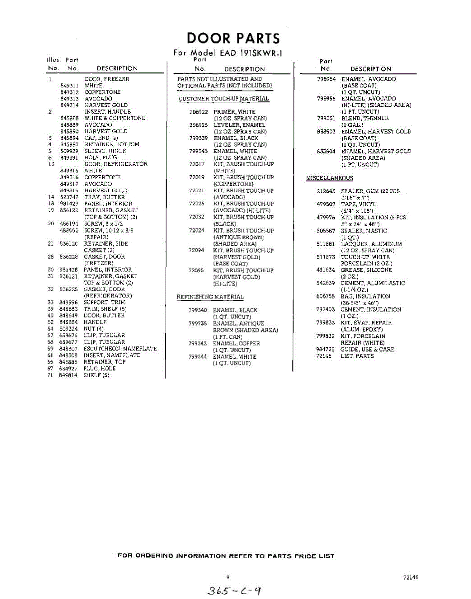 Parts for Whirlpool EAD191SKWR1: 09 - Lit / Optional Parts
