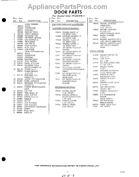 Parts for EAD191ZKWR1