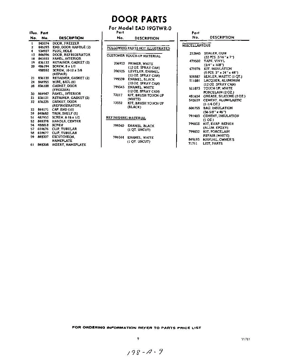 Parts for Whirlpool EAD19GTWR0: 09 - Lit / Optional Parts