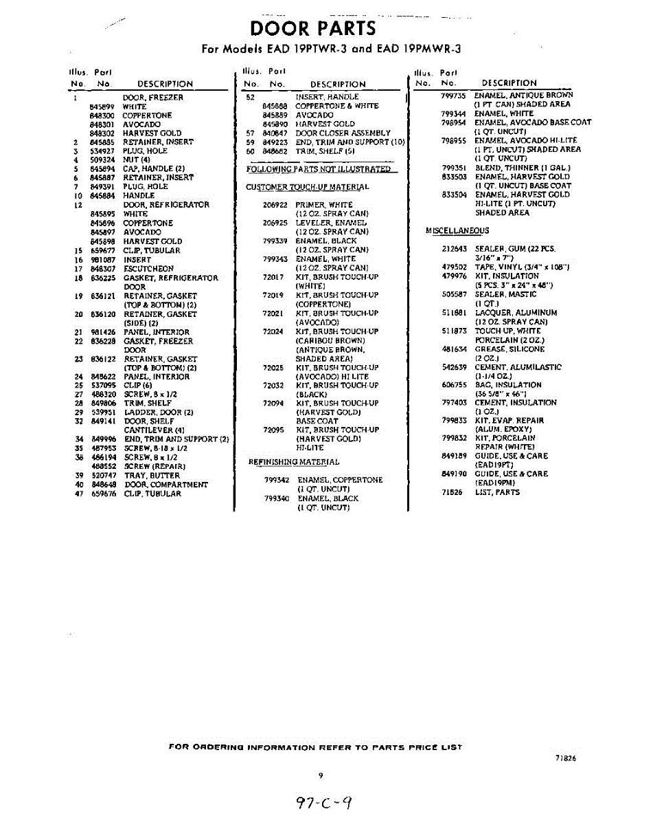 Parts for Whirlpool EAD19PMWR3: 09 - Lit / Optional Parts