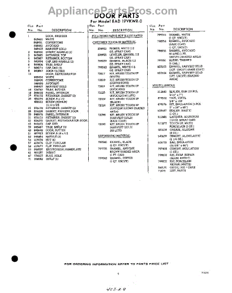 Parts for Whirlpool EAD19VKWR0: 09 - Lit / Optional Parts