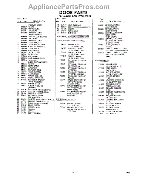 Parts for Whirlpool EAD19XMWR0: 09 - Lit / Optional Parts