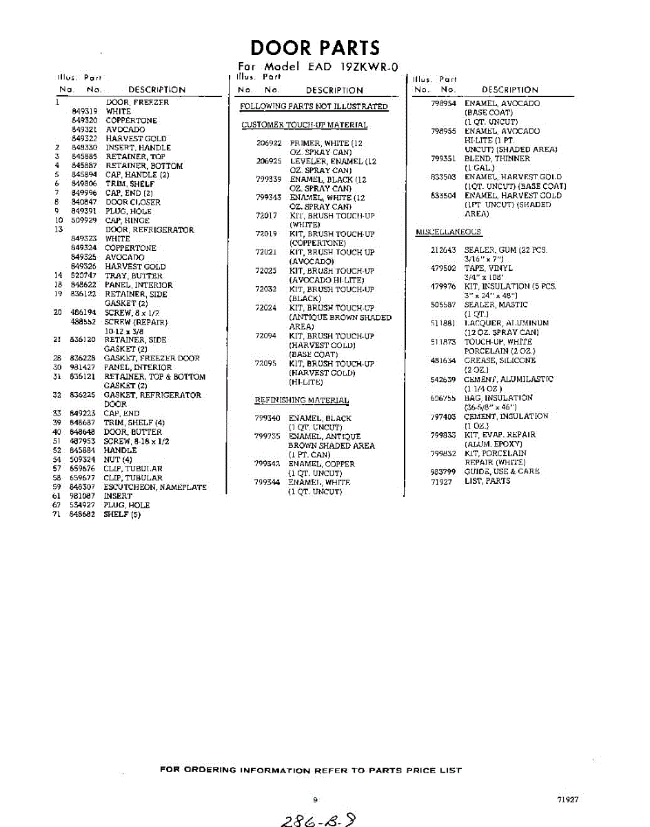 Parts for EAD19ZKWR0