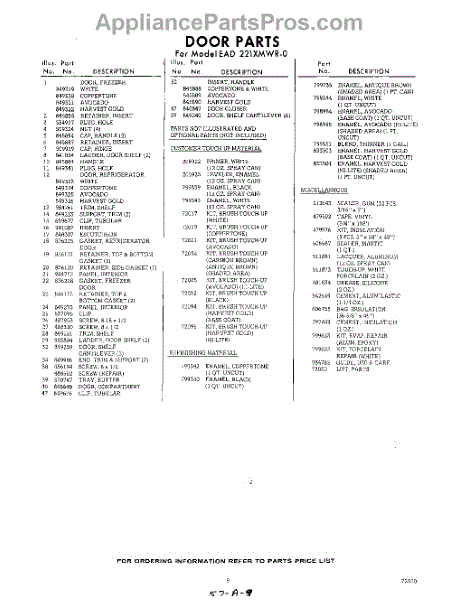 Parts for Whirlpool EAD221XMWR0: 09 - Lit / Optional Parts
