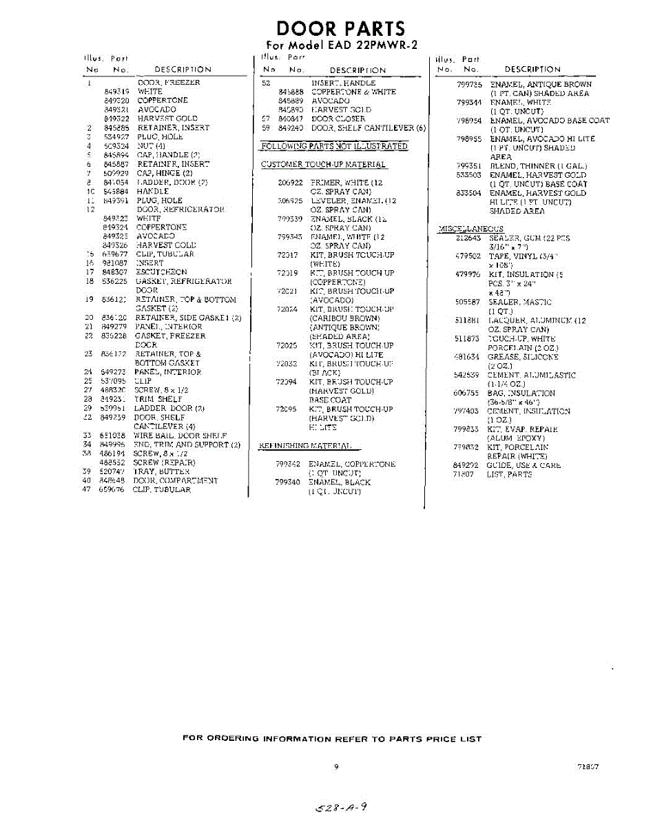 Parts for Whirlpool EAD22PMWR2: 09 - Lit / Optional Parts